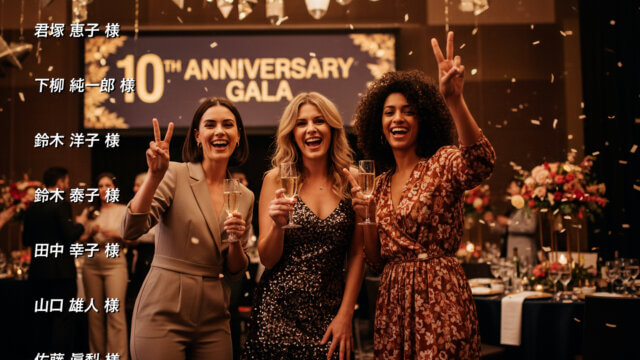 撮って出しエンドロールは、企業イベントやセミナー、パーティーなどのビジネスシーンで、高速かつ感動的な映像演出を実現します。撮影から編集、上映までを当日中に完結させるため、参加者の喜びや感動をリアルタイムで共有できるのが大きな特徴です。企業のブランディングや顧客関係の強化に効果的で、多くの企業が導入しています。